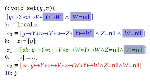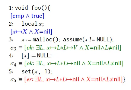 The static analysis in Pulse is a worklist-style forward Data-flow Analysis. Each control flow point is associated with a set of triples , which means ‘if is added to the precondition of the function, then holds at this point’.
