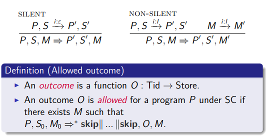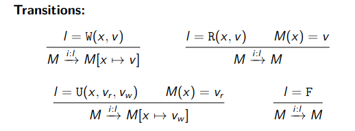 In Sequential Consistency, the memory state is a function from location to value, M.