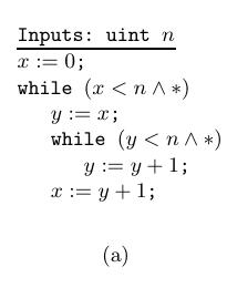 We now consider the case of a loop nested inside another loop. If our goal is to only prove termination of the outer loop, we can perform the process in a modular fashion: prove that the number of iterations of the outer loop is bounded, and prove that the number of iterations of the inner loop, in between any two iterations of the outer loop, is bounded. However, such a modular scheme would not work well for bound computation since it may often yield conservative bounds.
