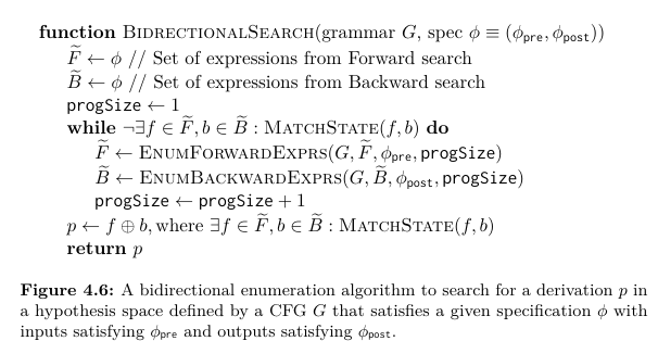 The key idea in this algorithm is to maintain a semantically unique set of expressions E, i.e. no two expressions e and e0 in E are functionally equivalent with respect to the specification φ. (It allows the bottom-up algorithm to significantly decrease the space of expressions.)