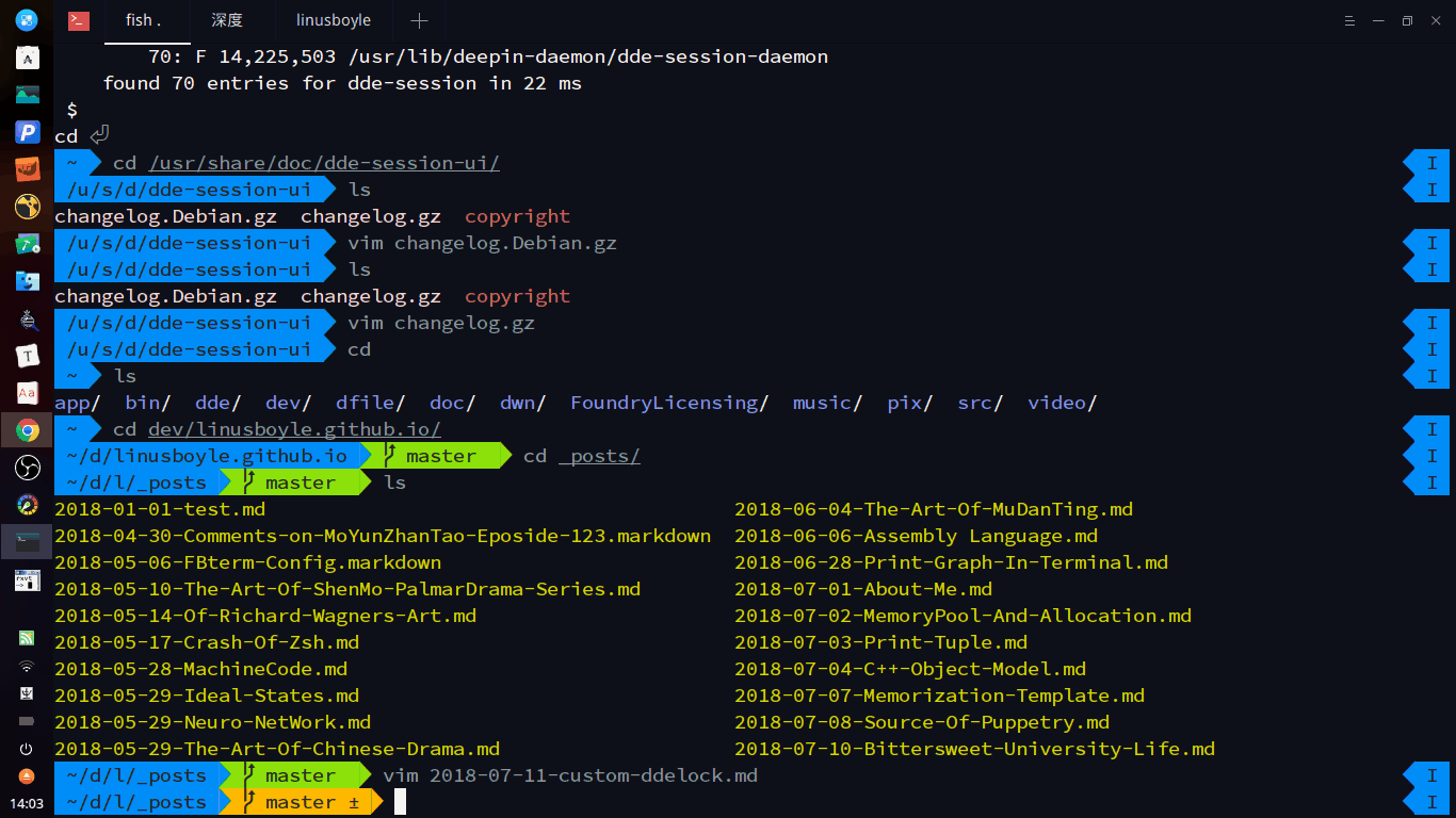 之前一段时间一直在用i3,不过网卡出了点问题,最近用回dde(主要是懒得注销了)。以前在i3定制的很多东西不太方便,比如动态模糊锁屏。