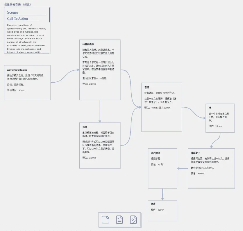 实际上,我在开团前还准备了完整的流程图,并预设了每个场景所需的大概时间: